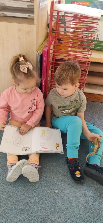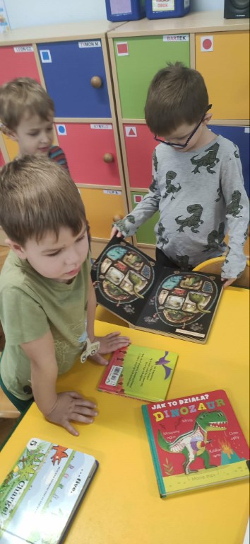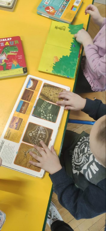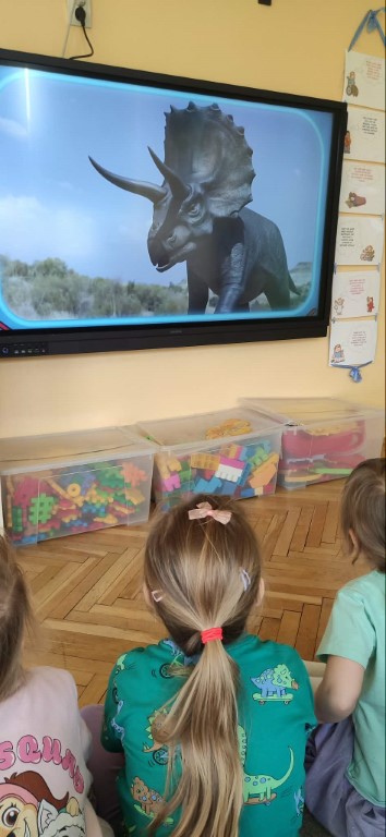 Nie zabrakło również czasu na oglądanie książeczek o dinozaurach oraz filmu edukacyjnego, dzięki którym dzieci mogły dowiedzieć się, jak żyły te niezwykłe stworzenia i dlaczego wyginęły.
