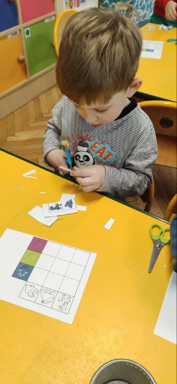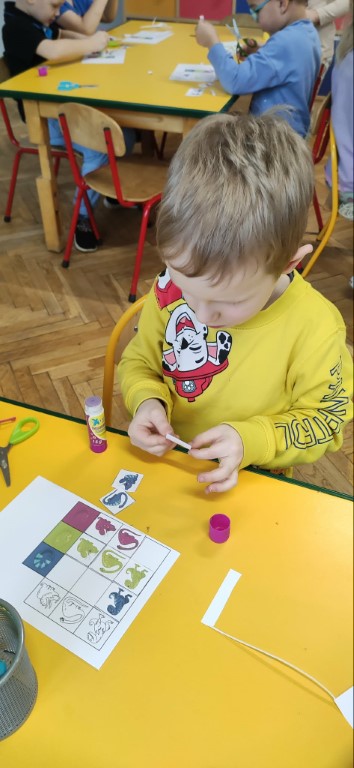 Kolejną atrakcją było bingo dinozaurowe. Dzieci utrwalały nazwy i wygląd różnych gatunków, ćwicząc przy tym koncentrację oraz spostrzegawczość.