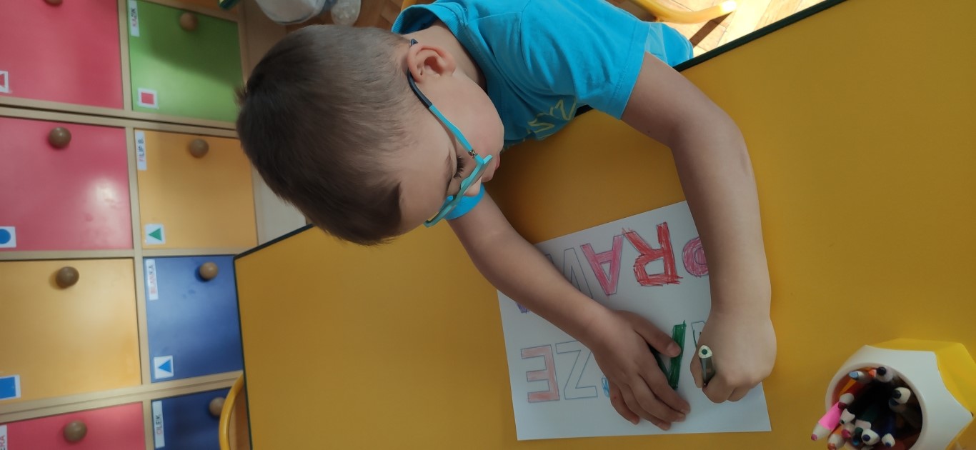 Dzisiejsze zajęcia poświęcone były ważnemu tematowi – prawom dziecka. Dzieci poznały najważniejsze z nich, rozmawiając o tym, dlaczego są potrzebne i jak pomagają każdemu młodemu człowiekowi czuć się bezpiecznie i szczęśliwie.