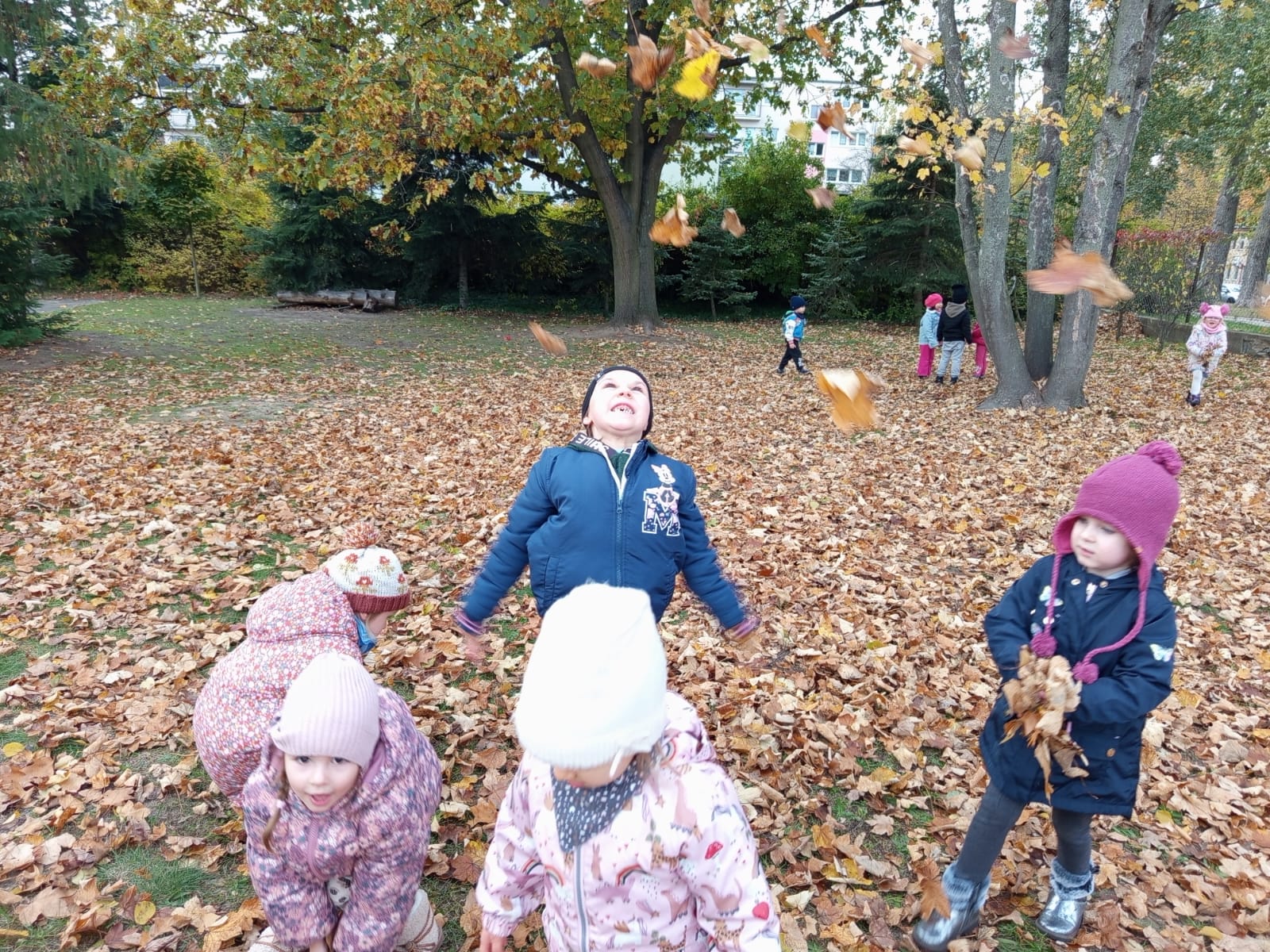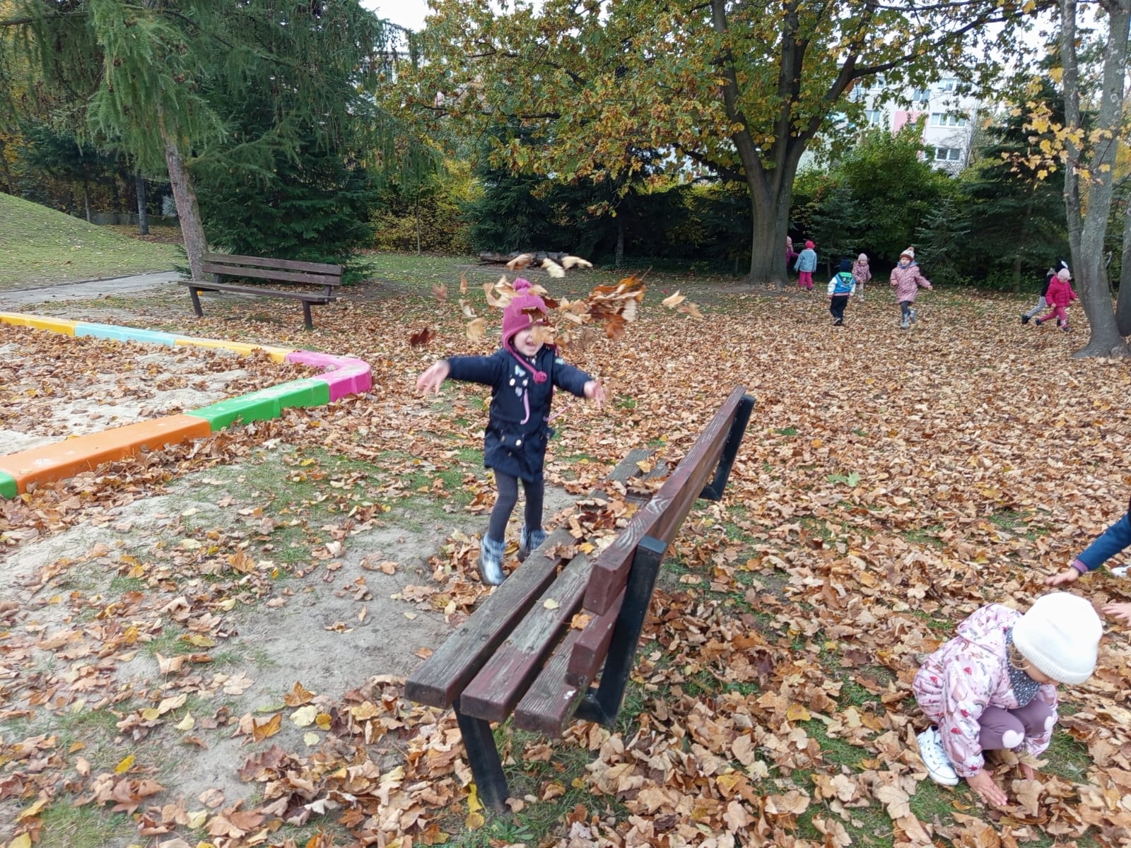 Gdy tylko pogoda dopisuje Motylki korzystają z jesiennej pogody i czas spędzają w ogrodzie przedszkolnym na wspólnej zabawie.