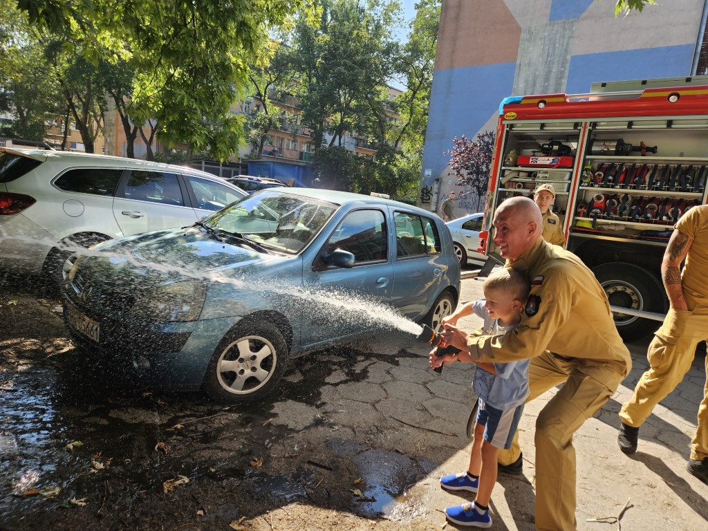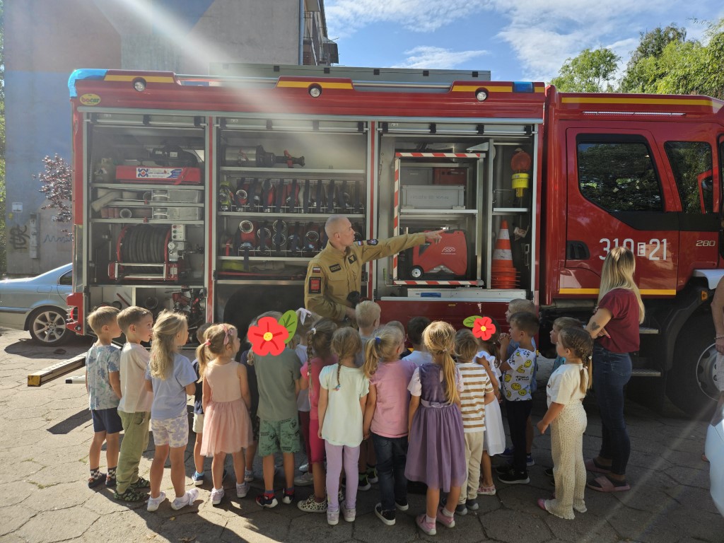 Dziś w naszym przedszkolu odbył się próbny alarm przeciwpożarowy. Była to doskonała okazja, aby nie tylko przećwiczyć zasady bezpieczeństwa, ale także spotkać się ze strażakami. Wszyscy doskonale się spisali i bezpiecznie opuścili budynek przedszkola. W nagrodę dzieci mogły z bliska obejrzeć wóz strażacki i porozmawiać ze strażakami. Przedszkolaki z ogromnym zaciekawieniem oglądały wyposażenie wozu straży pożarnej, wsiadały do wozu strażackiego. Najstarszym przedszkolakom najwięcej radości sprawiła możliwość przeżycia małej strażackiej przygody – dzieci mogły choć na chwilę poczuć się jak prawdziwy bohater i polać wodą z węża strażackiego. To była niezapomniana lekcja bezpieczeństwa połączona ze wspaniałą zabawą!