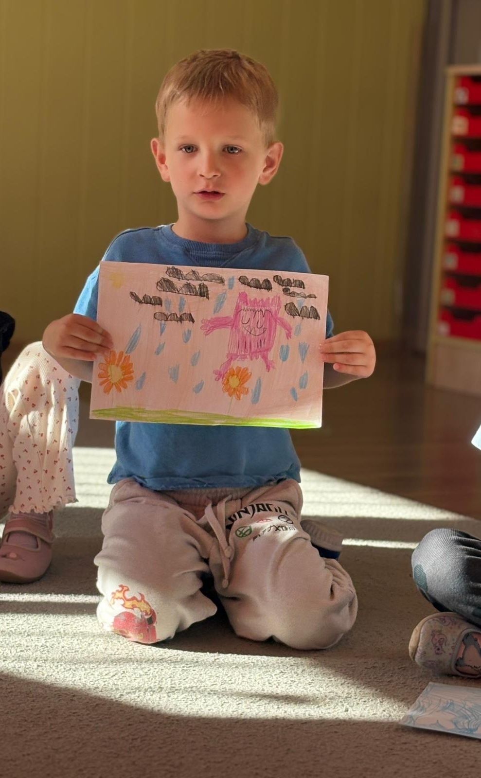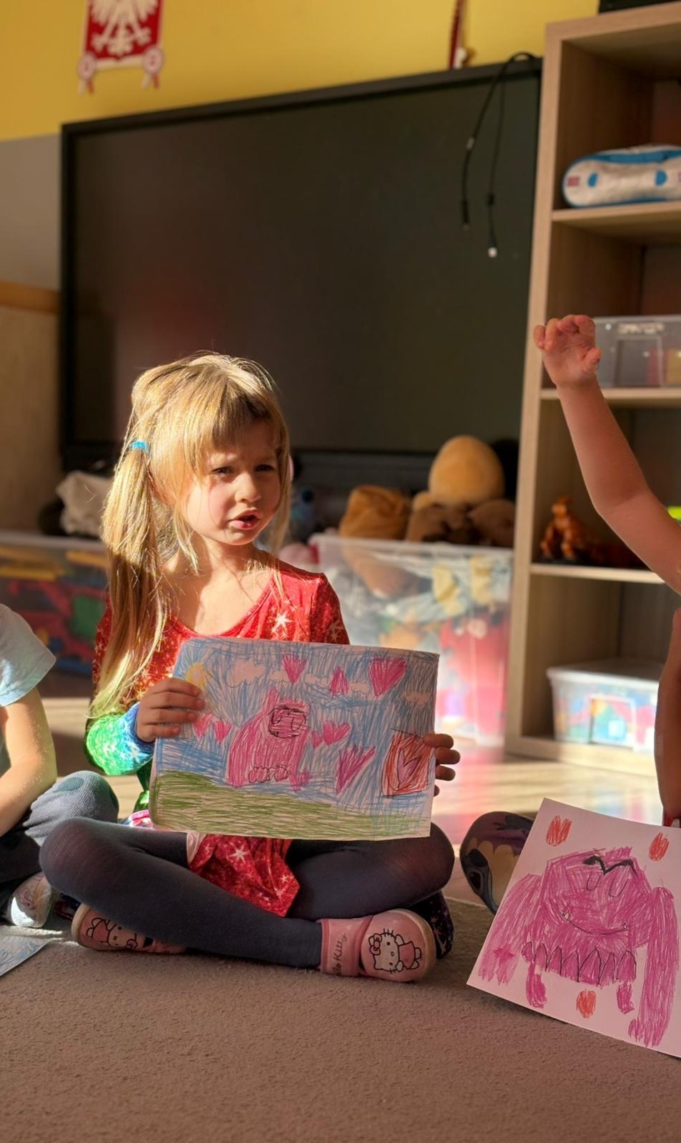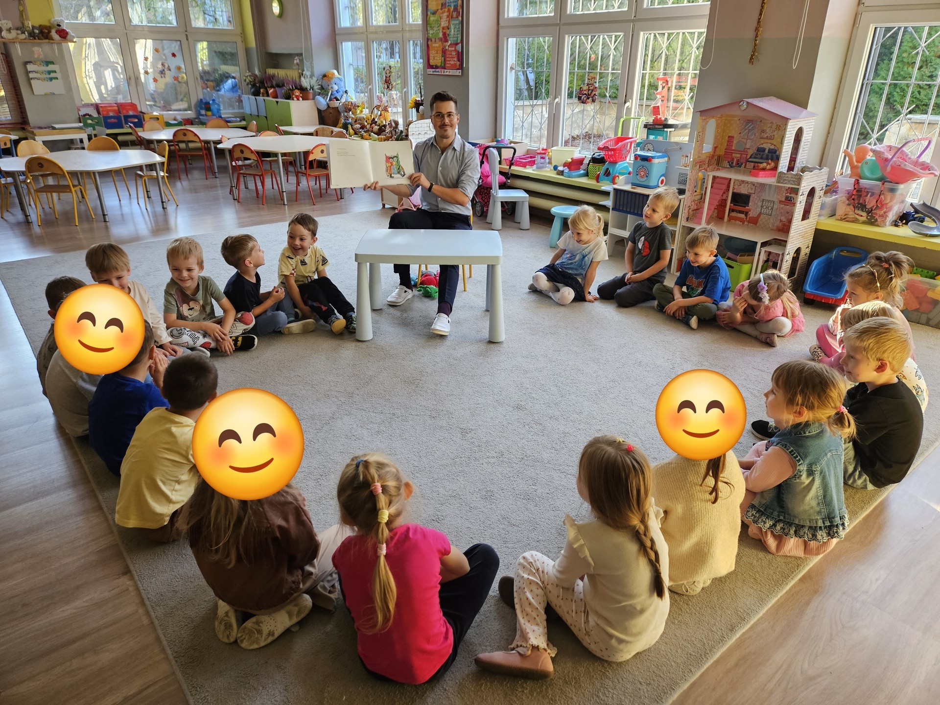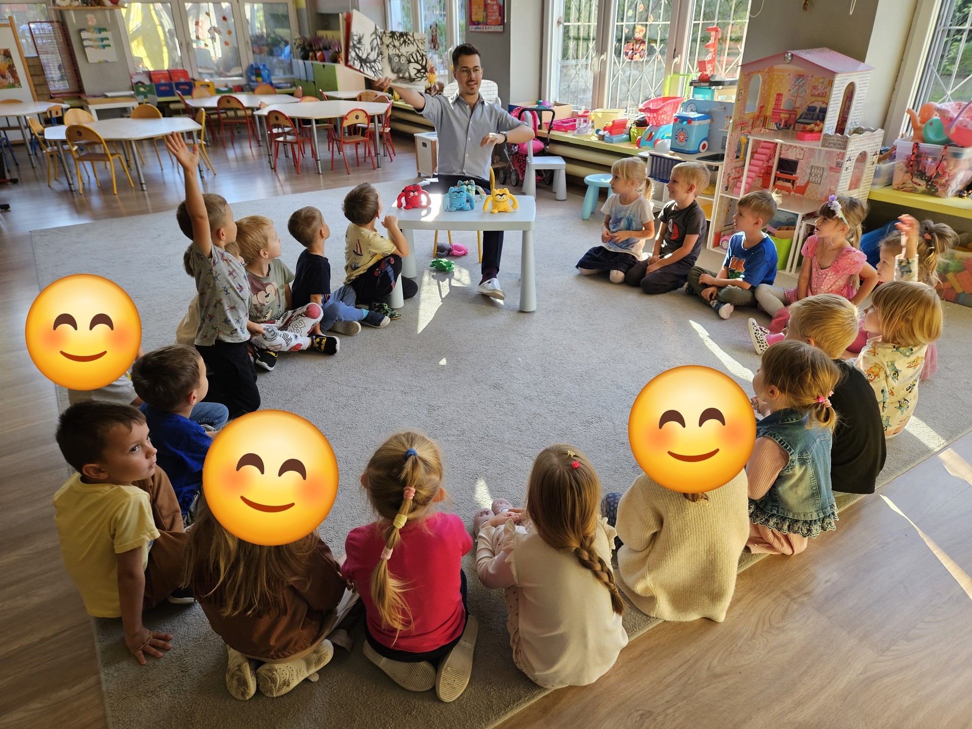Dzisiaj nasz przedszkolny psycholog, Pan Marcin, przeprowadził z dziećmi zajęcia na temat emocji oparte na książce „Kolorowy Potwór”. Dzieci lepiej poznały różne emocje, uczyły się je nazywać i rozpoznawać po kolorach. Rozmawiały o tym, jak można wyrażać swoje uczucia w bezpieczny sposób, co pomaga, gdy pojawia się smutek, złość czy strach, a także kiedy najczęściej czują radość.