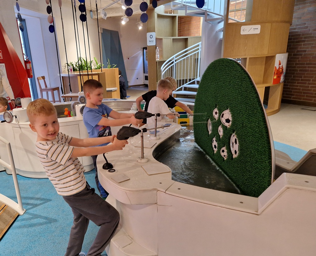 Następnie świetnie bawiły się w EC1 na Ulicy Żywiołów. Mogły obejrzeć pokaz ognia, bawić się wodą i obserwować, jak powstają wiry i fale. Sprawdzały działanie ciśnienia wody oraz to, dlaczego niektóre przedmioty unoszą się na powierzchni, a inne toną. Z dużą ciekawością korzystały z interaktywnych stanowisk, poznając zasady działania żywiołów w praktyce.